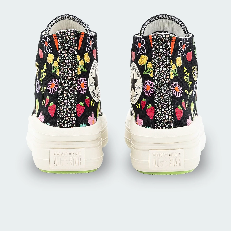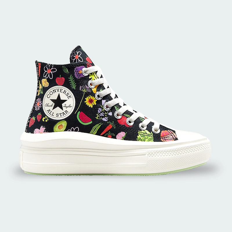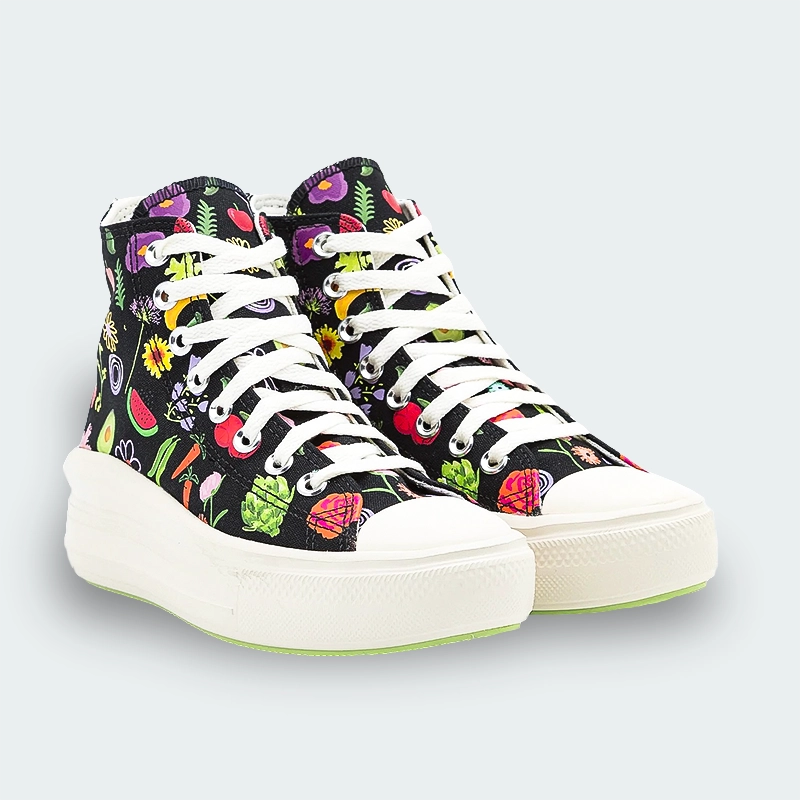 Los Tenis Converse Chuck Taylor All Star Move Juicy Green son una opción ultraligera y renovada con inspiración veraniega, ofreciendo una estética refrescante. Eleva tu estilo con la fusión de estampados florales y frutales en tus clásicos tops altos preferidos. Las suelas vibrantes en un verde jugoso y los detalles de estampados ocultos en la lengüeta interior hacen que estas plataformas estén diseñadas para captar la atención en cualquier ocasión. Aporta un toque de frescura y moda a tus pasos durante el verano.